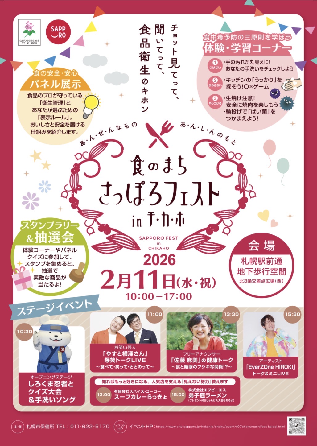 この度、「食のまち・さっぽろフェストin チカホ」さまにお招きいただき、 ステージ出演させていただきます 皆様のお越しを心よりお待ちしております! https://www.city.sapporo.jp/hokenjo/shoku/event/r07shokumachifest-kaisai.html